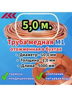 Труба медная 10,0 х 1,0 мм - 5,0 м