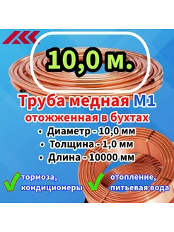 Труба медная 10,0 х 1,0 мм - 10,0 м