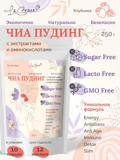 Чиа пудинг с чаем матча клубничный, без сахара, 250гр