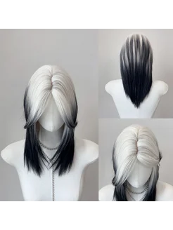 Парик белый с градиентом в черный короткий без челки
