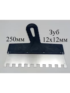Шпатель зубчатый 250мм, зуб 12х12мм, нержавеющая сталь