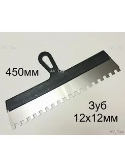 Шпатель зубчатый 450мм, зуб 12х12мм, нержавеющая сталь