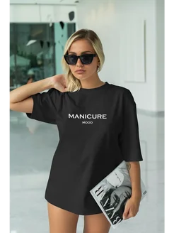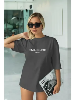 Футболка оверсайз тёмно-серая с надписью manicure mood