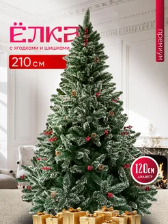 Елка искусственная новогодняя с шишками и ягодами 210см