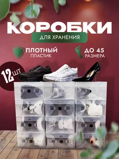 Коробки для хранения обуви прозрачные пластиковые 12 штук