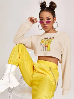 Укороченный Лонгслив y2k оверсайз с принтом кофта y2k
