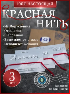Красная нить на руку из Иерусалима 3 штуки оберег от сглаза