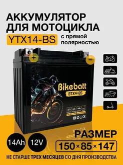 Аккумулятор для мотоцикла AGM 12В 14АЧ СТ1214,YTX14-BS