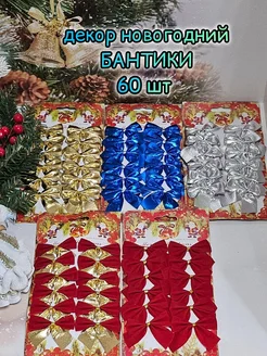Новогодние игрушки бантики на елку 60 шт