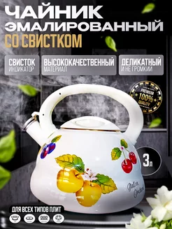 Чайник со свистком эмалированный "Яблоко-Вишня", 3л