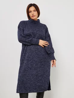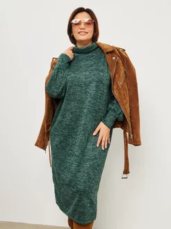Платье водолазка повседневное длинное теплое с разрезом