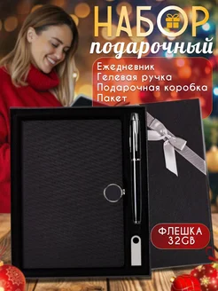 Подарочный набор, ежедневник, ручка, флешка 32Гб