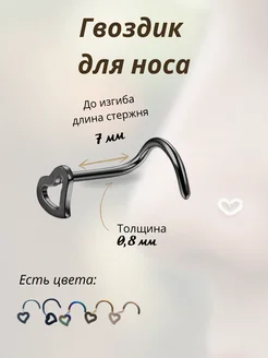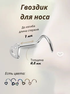 Гвоздик для носа с камнем, нострил серебристый прозрачный