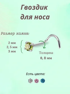 Гвоздик для носа с камнем, нострил серебристый розовый