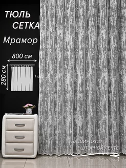 Готовый тюль мрамор 600х260 см на шторной ленте