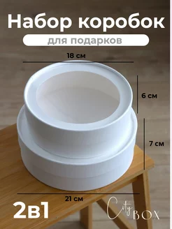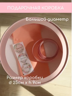 Упаковка для подарка.Коробка круглая с лентой и наклейкой