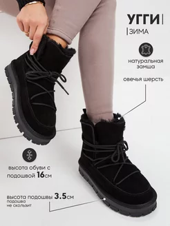 Угги зимние со шнурками натуральная замша