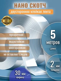 Двусторонний скотч крепкий 5 метров, ширина 30мм