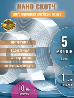 Двусторонний скотч крепкий 5 метров, ширина 10мм