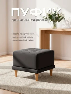Пуфик квадратный мягкий из микровелюра на деревянных ножках
