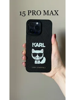 Чехол на iphone 15 pro max черный KARL LAGERFELD с котом