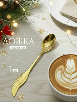 Ложка кофейная золотистая 1 шт "Крыло"