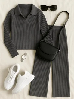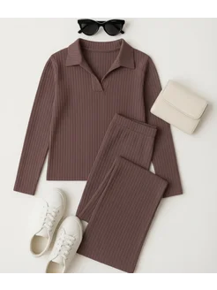 Костюм брючный двойка поло с длинным рукавом