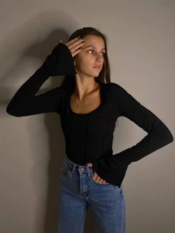 лонгслив с рукавом клеш, кофта женская, кроп топ