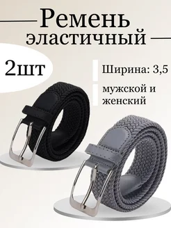 Ремень эластичный плетеный черный, серый 2шт, комплект
