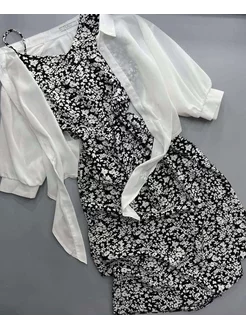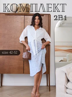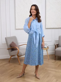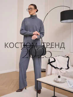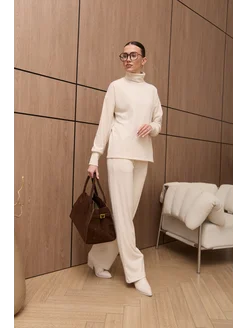 Костюм трикотажный на осень с брюками палаццо в рубчик