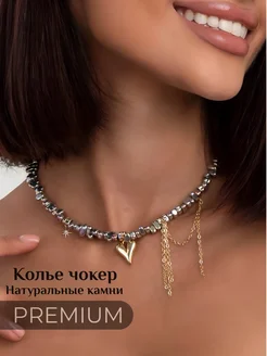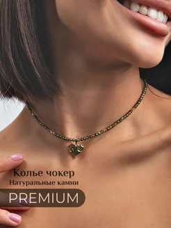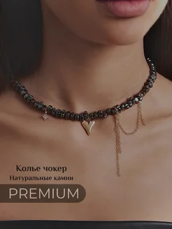 Чокер колье на шею натуральный гематит с кулоном сердце y2k