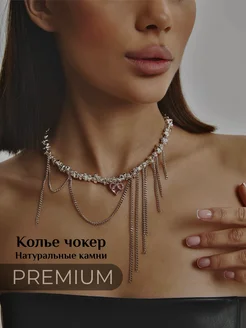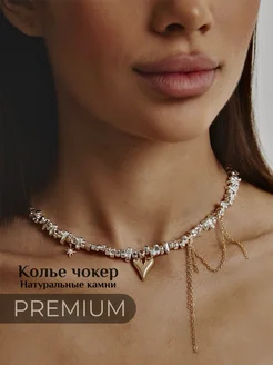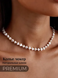Колье чокер на шею натуральный гематит с кулоном сердце y2k
