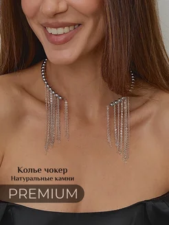 Колье чокер из гематита с цепями жемчугом и кулоном