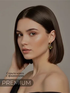 Серьги конго трансформер с съемной подвеской сердечко оливка