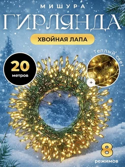 Новогодняя гирлянда хвойная лапа мишура 20м