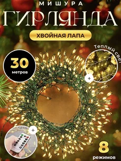 Новогодняя гирлянда хвойная лапа мишура 30м