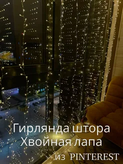 Новогодняя гирлянда штора хвойная лапа мишура 3х2