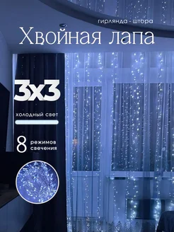 Новогодняя гирлянда штора хвойная лапа мишура 3х3