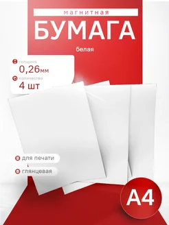 Магнитная бумага А4 глянцевая 4 листа для печати