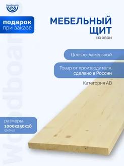 Мебельный щит цельноламельный категории AB 1000х250х18 мм