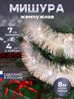 Мишура новогодняя пушистая перламутровая, набор 4 штуки