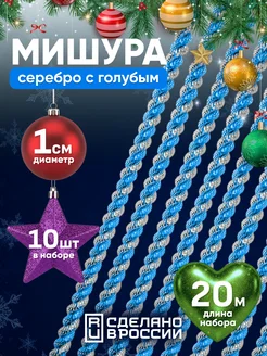 Мишура новогодняя на елку серебро с голубым, 10 штук