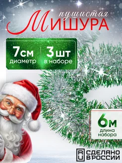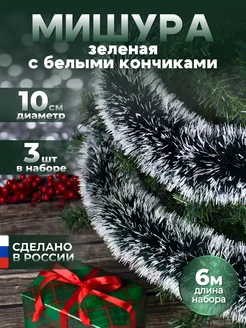 Мишура новогодняя зеленая с белыми кончиками, 3 штуки
