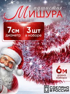 Мишура новогодняя серебряная с красными кончиками, 3 штуки
