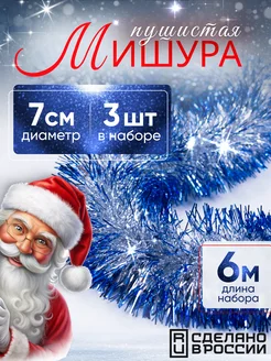 Мишура новогодняя серебряная с синими кончиками, 3 штуки