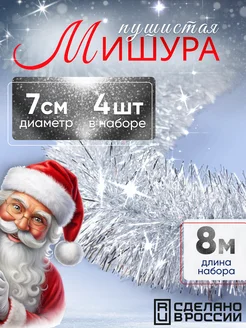 Мишура новогодняя серебряная, 4 штуки