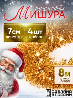 Мишура новогодняя золотая, 4 штуки
