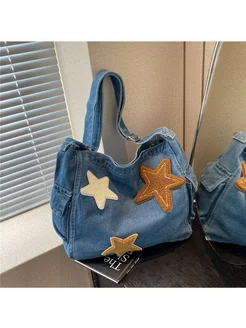 Джинсовая сумка со звездами y2k шоппер эстетик шоп