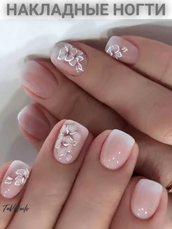 Накладные ногти с дизайном и клеем короткие набор 24 шт