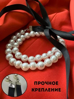 Чокер бант на шею с искусственным жемчугом и черной лентой